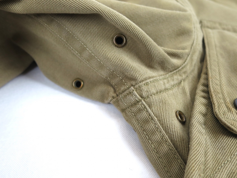 袖のサビ汚れのような部分ですが生地の硬化は見られませんのでご安心ください。
