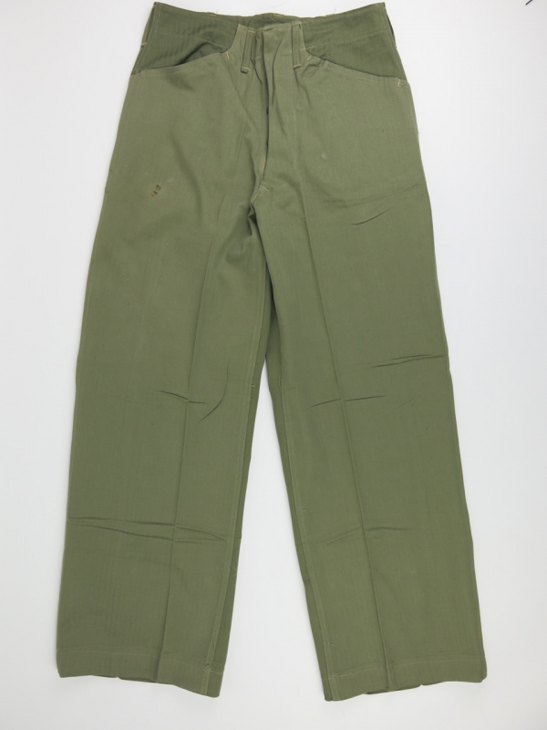 富山店の商品になります。 お電話でのお問い合わせ:076-492-8634 1942’Sの物です。 CONDITION:NOS状態ですが汚れがありますの と一番下のボタンに錆、他のボタンは表面に僅か ですが錆があります。その為USEDプライス (当店比)に設定致しました。汚れは洗って完全に 取れるかは判断しかねますのでご理解下さい。 生地は前面と後面で色味が違う2TONEになって いますのでそこもポイント高い1本です。 DEAD STOCKは気が引けると言う方には特に お勧めです。なかなかW32実寸W31は出て来ま せんのでSIZEの合う方でお好きな方は是非お考 え下さい。神経質な方はお店でご購入ください。 こちらの商品は店頭でも販売している為ご注文 頂いた時点で商品が欠品している可能性があり ます。お手数を掛けますが電話かメールで在庫 確認後の発送になります。 お支払い方法はクロネコヤマト代引(クレジット可) のみになります。 返品は受け付けておりません。 ご了承の上お買い上げ下さい。