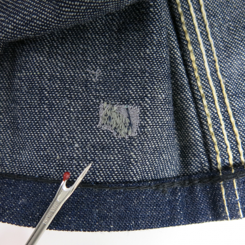 あったので修理しています。裾の上なので