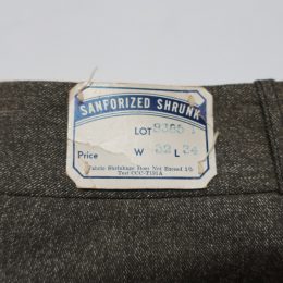 金沢店の商品になりますので電話でのお問合わせ は076-210-7010へお願いします。 CONDITION:折り目に沿って汚れなどがあります のでUSEDプライスにてご提供いたします。 履いて洗っていくうちに少しはわから無くなって いくものだと思います。この位の値段で気兼ね無 く履きたいという方は是非ご検討ください。 作りも良いですし生地感も良いです。 生地は、シャツに使われる物より厚手のしっかり した生地です。最近はなかなか出なくなって来て おりますのでお好きな方は是非この機会に履いて みて下さい。オリジナルにしか無い物を体験出来 ると思います。丈が長い場合は、カットしても 問題ありません。私もそうやって履いております。 勿論、当店でも丈上げ出来ます。(根本) 遠方の方はお支払い後の丈直しとさせて頂いて おります。神経質な方は、ご遠慮ください。 こちらの商品は全て店頭でも販売している為 ご注文頂いた時点で商品が欠品している可能性が あります。お手数を掛けますが電話かメールで 連絡の上在庫確認後の発送になります。 お支払い方法はクロネコヤマト代引(クレジット可) のみになります。 返品は受け付けておりません。 ご了承の上お買い上げ下さい。