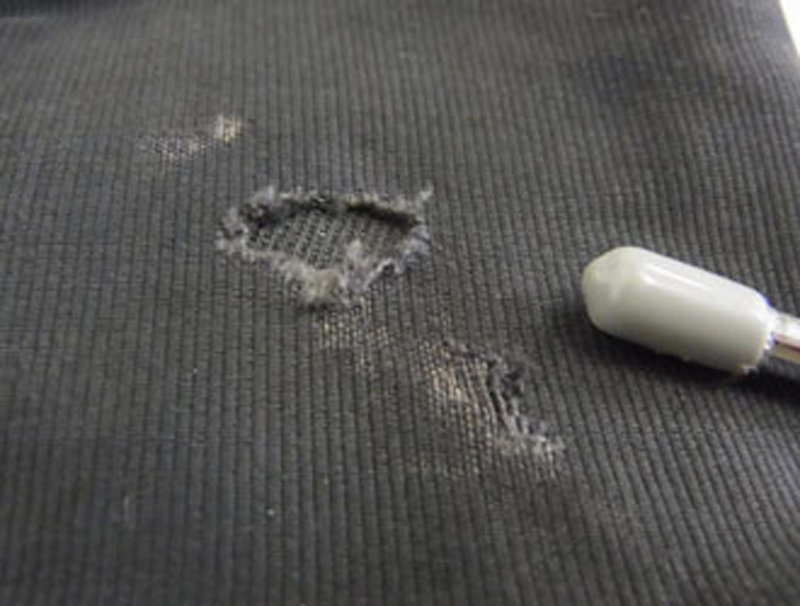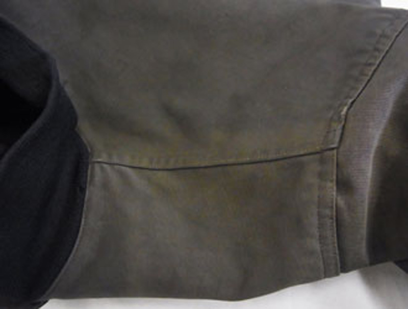 上の傷の拡大写真です。裏から生地を当ててあります。