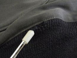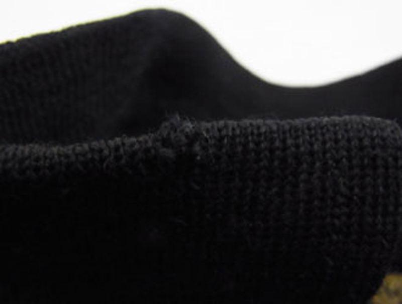 裾リブの虫食い。