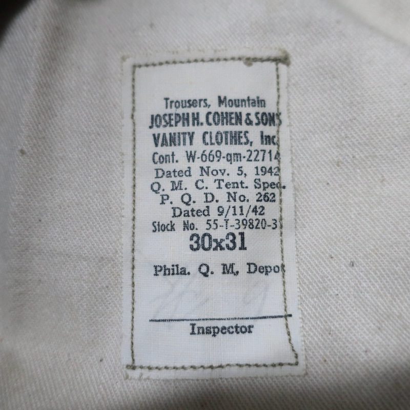 40年代 山岳特殊部隊用のTROUSERSです。