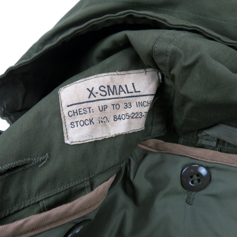 富山店の商品になります。 お電話でのお問い合わせ:076-492-8634 大雪の関係で発送が14日木曜日以降になり ますので予めご了承ください。 M-51になりますと出てくる数は激減するのですが その中でXSとなると作ってたの?と思うくらいに 出て来ません。当店ではM-65のXSと比べると 100枚に1枚も見つからないと思います。 CONDITION:殆ど使用感が見られず汚れ等は少し ありますが綺麗な状態と言えます。 ライナーはSMALLが付いており多少使用感は ありますが綺麗です。 是非この機会にお考え下さい。 神経質な方はお店でのご購入でお願いします。 こちらの商品は全て店頭でも販売している為ご注 文頂いた時点で商品が欠品している可能性があり ます。お手数を掛けますが電話かメールで連絡の 上在庫確認後の発送になります。 お支払い方法はクロネコヤマト代引(クレジット可) のみになります。 返品は受け付けておりません。 ご了承の上お買い上げ下さい。