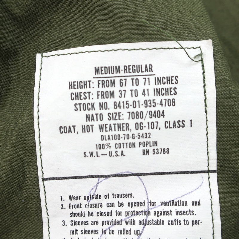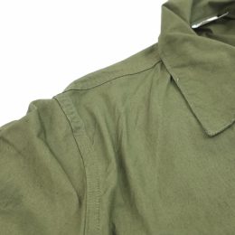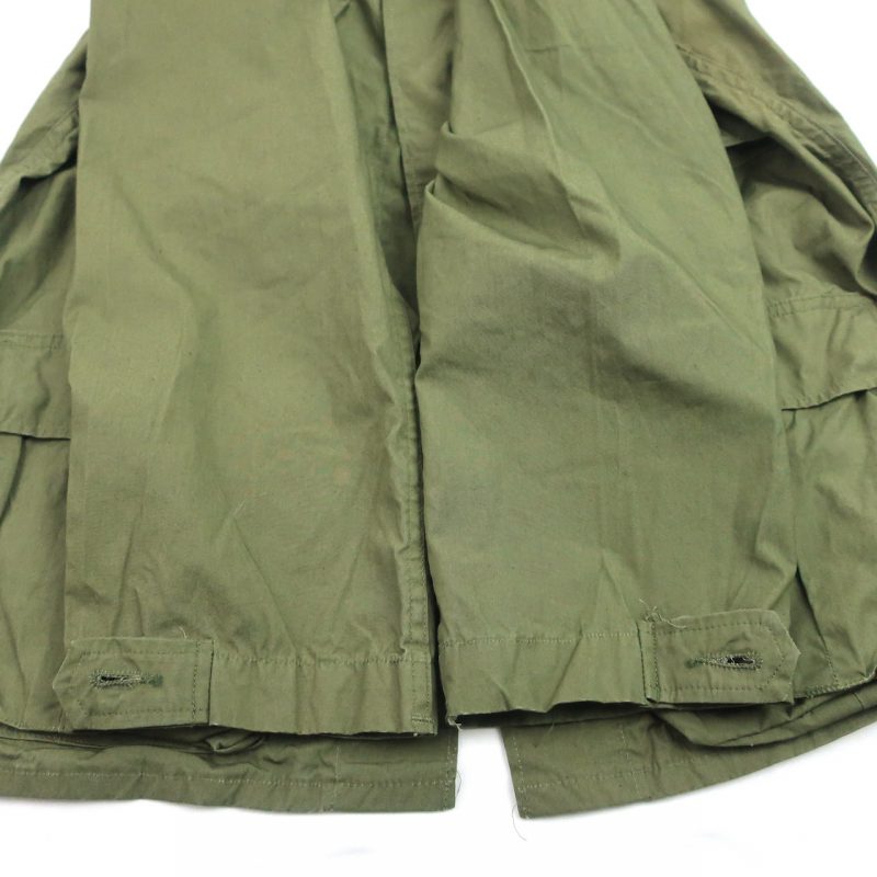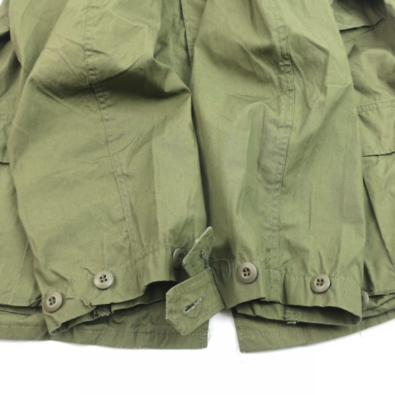 金沢店の商品になります。 電話でのお問合わせ:076-210-7010 70年会計品でCotton Non Rip Poplin TYPEとなります。 袖は70年代のディテールですので 余った生地を使って作られたのでしょう。 背中上部のヨークがないのはどう言ったことでしょうか。。笑 非常に興味深いですね。 jungle fatigueは本当にいろんなパターンがありますので 集めておられる方の方が詳しいかと思います。 変わったものをお探しの方は是非ご検討ください。 CONDITION:保管による汚れ等はあるかもしれ ませんが酷い物は全くございません。綺麗です が50年以上前の製品ですのでその辺りはご理解 頂ける方のみご購入を検討お願い致します。 着用には普通に耐えれる良い状態です。 是非この機会にお考え下さい。 神経質な方はお店でのご購入でお願いします。 当店のシステムは買い物カゴを使用していない 為ほんの少しの差で注文が入っての売り違いや 店頭でも販売している為ご注文頂いた時点で 商品が欠品している可能性があります。 お手数を掛けますが在庫確認後の発送になりま すので予めご了承頂ける方のみお求め頂けまし たら幸いです。当店の通販規約をこちらで必ず ご確認頂いてから当店をご利用ください。 お支払い方法クロネコヤマト代引(クレジット可) のみになります。 返品は受け付けておりません。 ご了承頂ける方のみお願い致します。