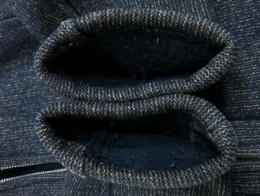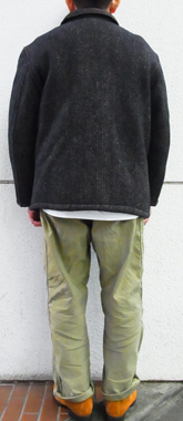 使用感は、30%程度で綺麗ですが後に1ヶ所、穴の補修があります。あと、襟裏に付く裏地に破れがあります。