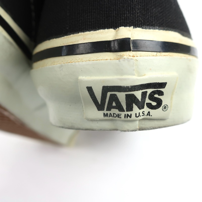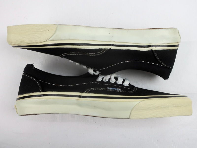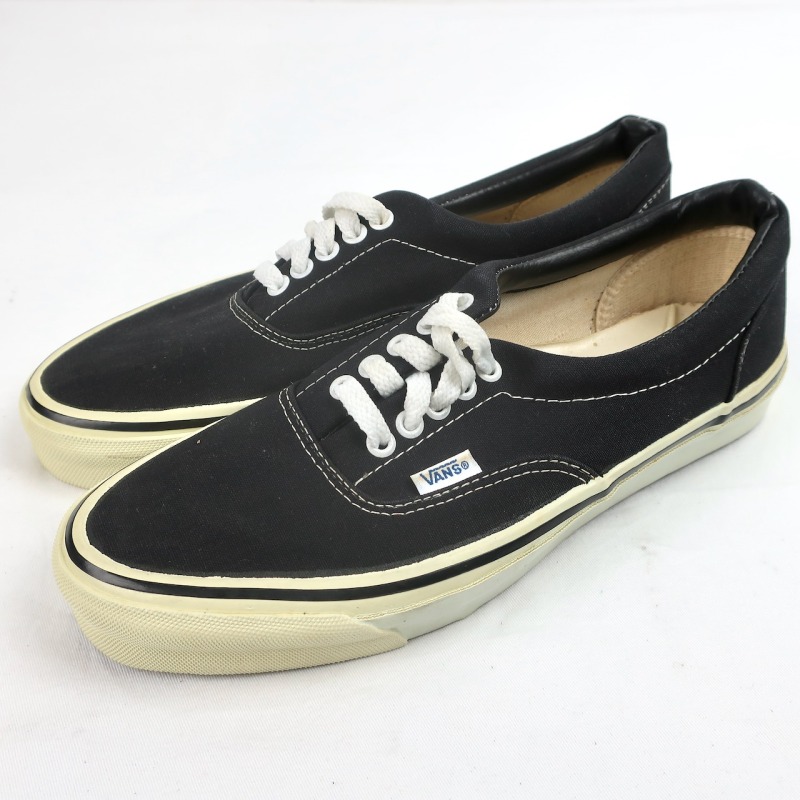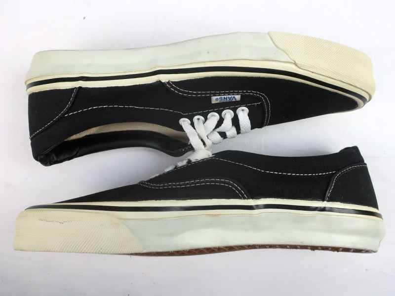 金沢店の商品になりますので、 電話でのお問合わせは076-210-7010へお願いします 70’s VANS ERA 保管上の汚れがありますが未着用のDEADSTOCK CONDITIONです。 ソールの粘り気や劣化もありません。 非常に綺麗なDEADSTOCKと言えるでしょう。 箱付きのDEADSTOCKでの紹介できる機会はかなり限られてくるでしょう。 BLACK/WHITEのNO.1 COLORと思われる色目です。 70年代 VANS 初期の青ピスマークのBLACK ERA DEADSTOCK わかる方にはわかっていただけるかと思います。 この機会に是非ご検討ください。 お好きな方は今のうちに買っておかれても良いかと思います。 この機会に是非ご検討下さい。 多少の擦れ等はありますので神経質な方はお店でのご購入でお願いします。 当店のシステムは買い物カゴを使用していない為ほんの少しの差で注文が入っての売り違いや店頭でも販売している為ご注文頂いた時点で商品が欠品している可能性があります。 お手数を掛けますが在庫確認後の発送になりますので予めご了承頂ける方のみお求め頂けましたら幸いです。 当店の通販規約をこちらで必ずご確認頂いてから当店をご利用ください。 お支払い方法クロネコヤマト代引(クレジット可)のみになります。 返品は受け付けておりません。ご了承頂ける方のみお願い致します。