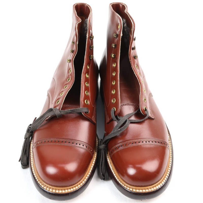 金沢店の商品になりますので、 電話でのお問合わせは076-210-7010へお願いします 写真でもその素晴らしさは伝わるかと思います。 50−60年代頃に上級モデルとして作られていた MASSOGIC LINEのDRESS BOOTS 70年以上前の商品とは思えないのはその作りと質の良さでしょう。 是非ご検討ください。 保管状況による擦れ等はありますので、神経質な方は店頭でご確認ください。 神経質な方はお店でのご購入でお願いします。 当店のシステムは買い物カゴを使用していない為ほんの少しの差で注文が入っての売り違いや店頭でも販売している為ご注文頂いた時点で商品が欠品している可能性があります。 お手数を掛けますが在庫確認後の発送になりますので予めご了承頂ける方のみお求め頂けましたら幸いです。 当店の通販規約をこちらで必ずご確認頂いてから当店をご利用ください。 お支払い方法クロネコヤマト代引(クレジット可)のみになります。 返品は受け付けておりません。ご了承頂ける方のみお願い致します。