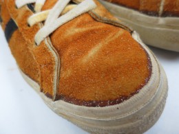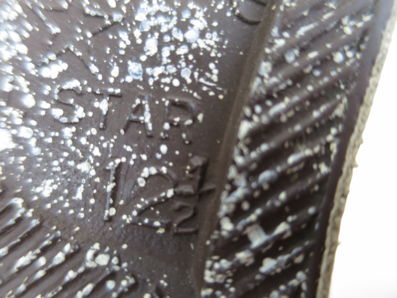 踵内側にひび割れもありません。全体的にスプレーによる汚れがありますが、アッパーはそれほど目立たない程度の物です。