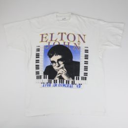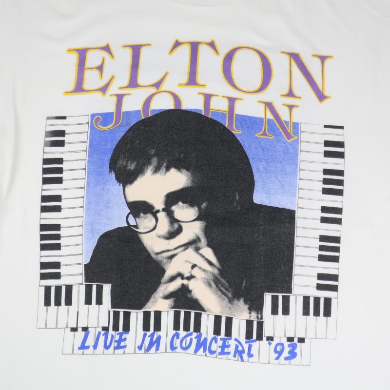 1990年代前半、ドラッグ、アルコール依存症によるどん底から這い上がったELTON JOHN。 1993年リリースのスタジオアルバム”THE ONE”のヒットで勢いづく中に出演したチャリティコンサート、”WALDEN WOODS BENEFIT CONCERT” に出演した際のTシャツです。