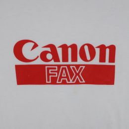 ご存じ日本の大手精密機器製造会社、キヤノンの北米法人のTシャツです。 FAXってところが時代を感じますね。