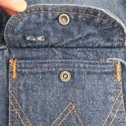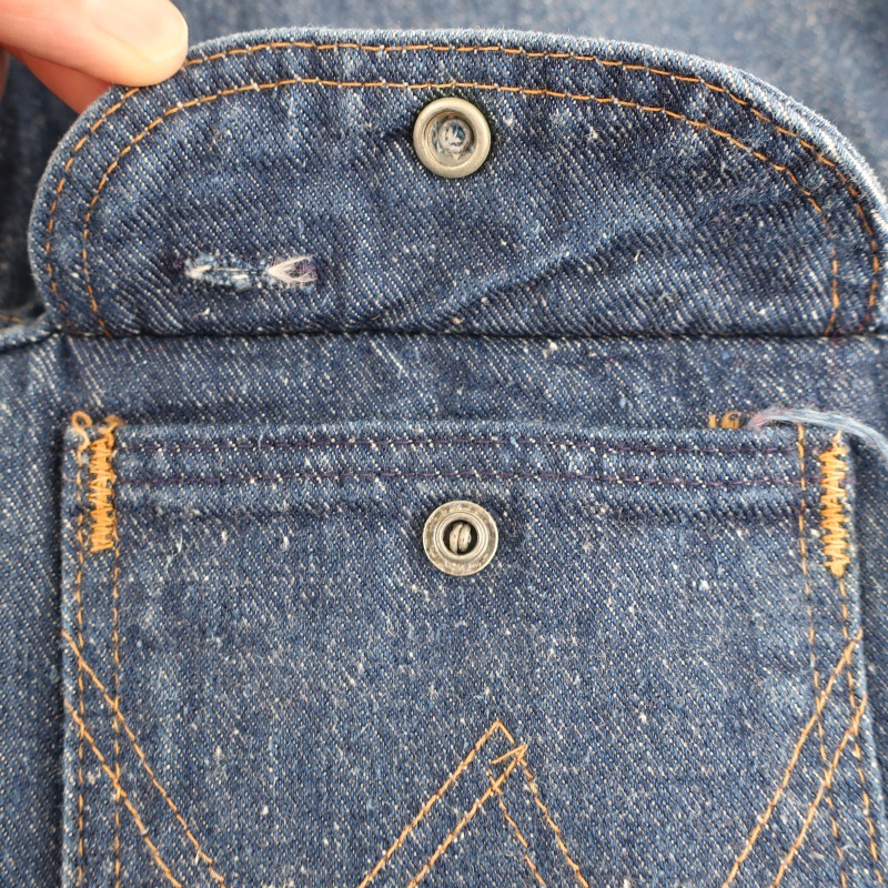 この年代のデニム特有の深い色味で判りづらいですが、恐らく着用回数は多くなく、9割ほどの濃い色残りです。
