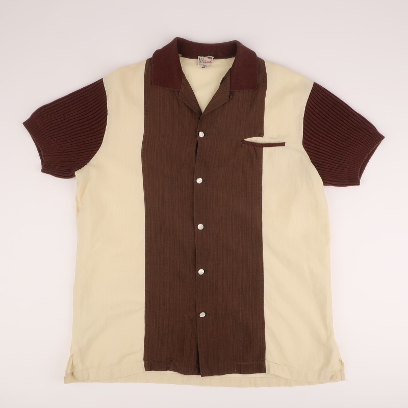 袖と襟がコットンニット生地の切り替えしになった50’sらしい特徴的な生地使いのシャツです。