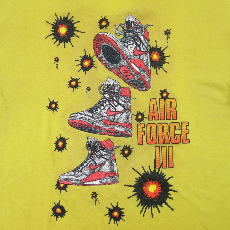 富山店の商品となります。 電話での問い合わせ:076-492-8634 90’s NIKE:アメリカのコレクターさんの 放出になります。AIR FORCEⅢです。レア プリントです。コレクター様も是非。 袖裾共にシングルです。 CONDITION:シミ汚れはありますが良い状態 だと思います。ダメージは見当たりません。 神経質な方は必ず店頭でご確認後の購入を お願い致します。 当店のシステムは買い物カゴを使用していない 為ほんの少しの差で注文が入っての売り違いや 店頭でも販売している為ご注文頂いた時点で 商品が欠品している可能性があります。 お手数を掛けますが在庫確認後の発送になりま すので予めご了承頂ける方のみお求め頂けまし たら幸いです。当店の通販規約をこちらで必ず ご確認頂いてから当店をご利用ください。 お支払い方法クロネコヤマト代引(クレジット可) のみになります。 返品は受け付けておりません。 ご了承頂ける方のみお願い致します。