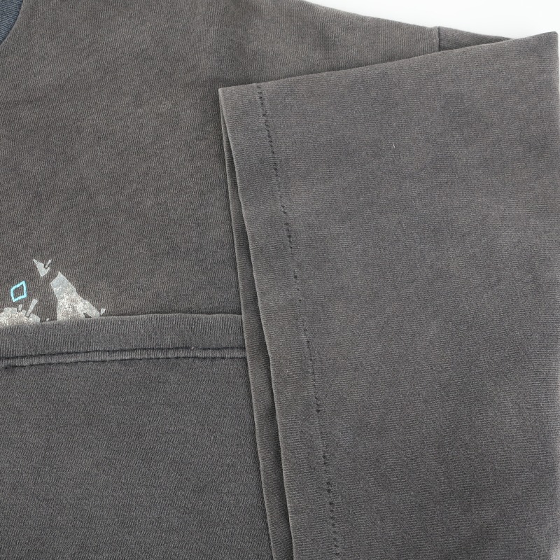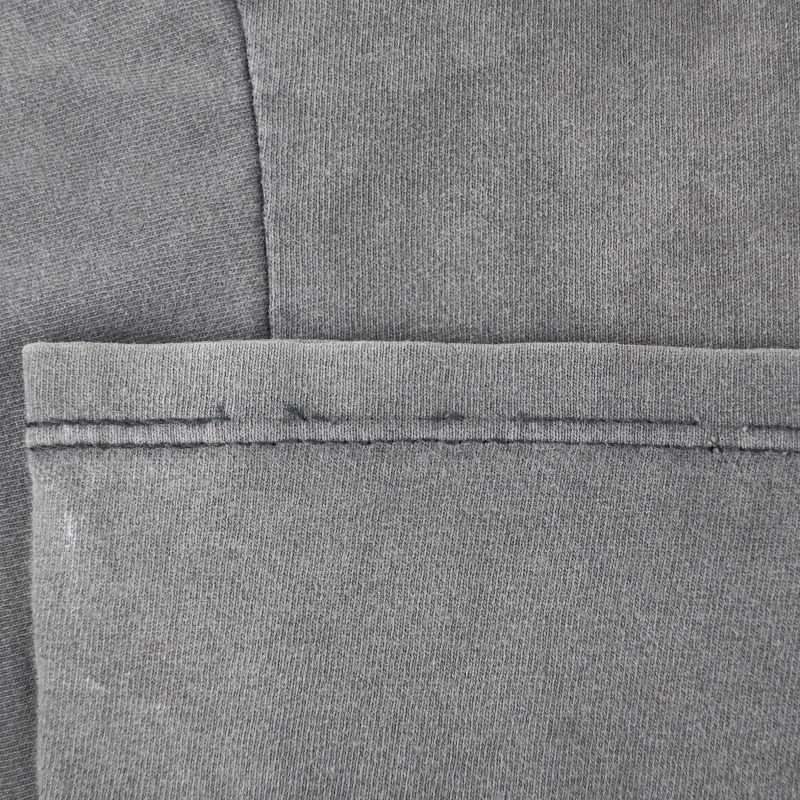裾のダブルステッチのに解れが見られますが片側が止まっており裾自体ほどけてはおりません。 全体的な退色の他襟元にダメージがございます。