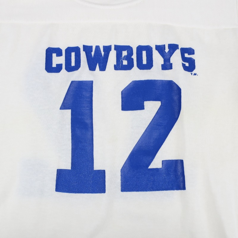 金沢店の商品になりますので、 電話でのお問合わせは076-210-7010へお願いします NYLON/COTTON 混紡のジャージー生地のFOOTBALL Tシャツです。 DALLAS COWBOYSのOFFICIALのGOODSであったと考えられます。