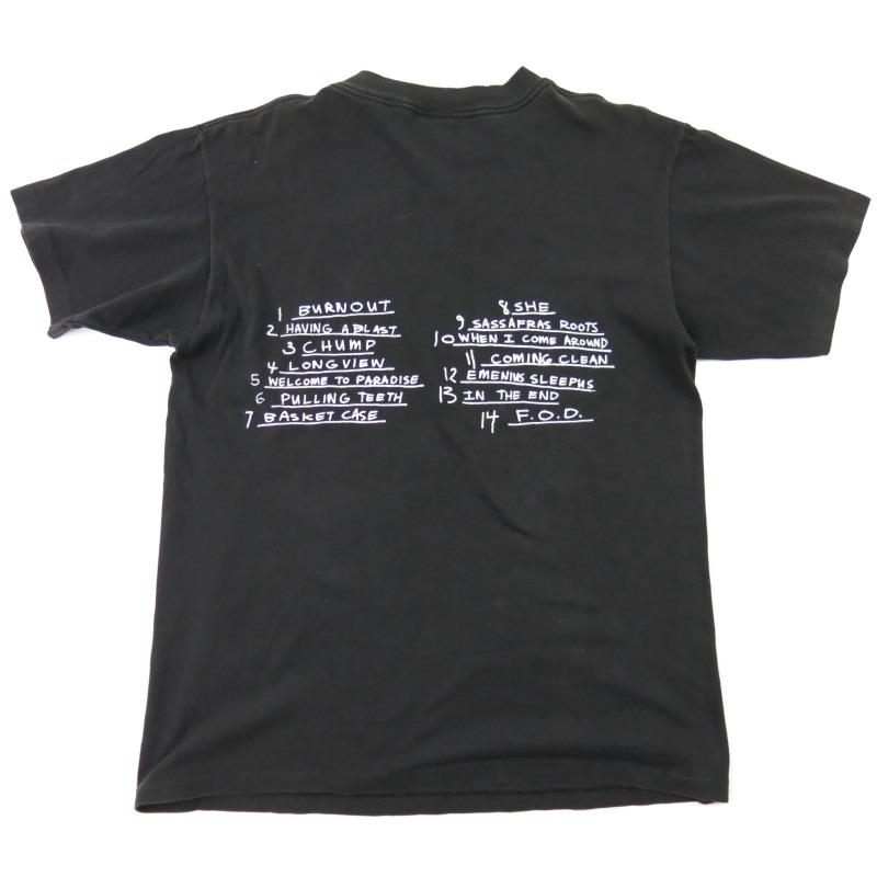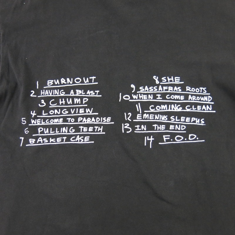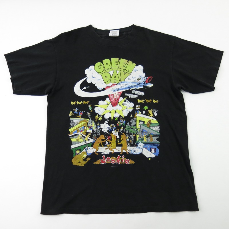 富山店の商品となります。 電話での問い合わせ:076-492-8634 95’s GREEN DAY, dookie 人気のグラフィック です。袖裾共にシングルです。 CONDITION:60%程度の使用感でネックリブ に1個かなり小さい傷と右肩に穴があったので 上手くリペアしてもらいました。そこまで 悪い状態では無いのでまだまだ着用出来ます 神経質な方は必ず店頭でご確認後の購入を お願い致します。 当店のシステムは買い物カゴを使用していない 為ほんの少しの差で注文が入っての売り違いや 店頭でも販売している為ご注文頂いた時点で 商品が欠品している可能性があります。 お手数を掛けますが在庫確認後の発送になりま すので予めご了承頂ける方のみお求め頂けまし たら幸いです。当店の通販規約をこちらで必ず ご確認頂いてから当店をご利用ください。 お支払い方法クロネコヤマト代引(クレジット可) のみになります。 返品は受け付けておりません。 ご了承頂ける方のみお願い致します。