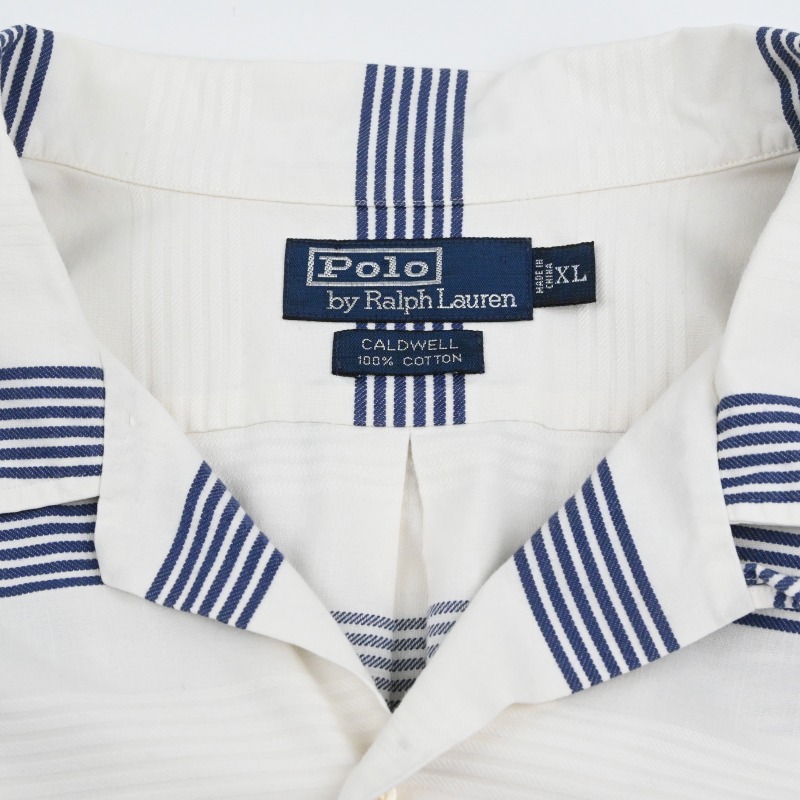 90’s POLO RALPH LAUREN "CALDWELL" BORDER OPEN COLLAR SHIRT SIZE XL |