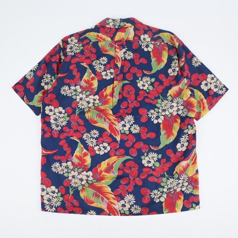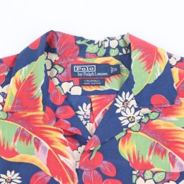 90's POLO RALPH LAUREN "CALDWELL" OPEN COLLAR SHIRT NAVY HAWAIIAN |
