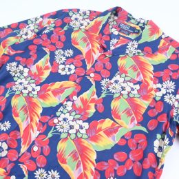 90’s POLO RALPH LAUREN “CALDWELL” OPEN COLLAR SHIRT NAVY HAWAIIAN
