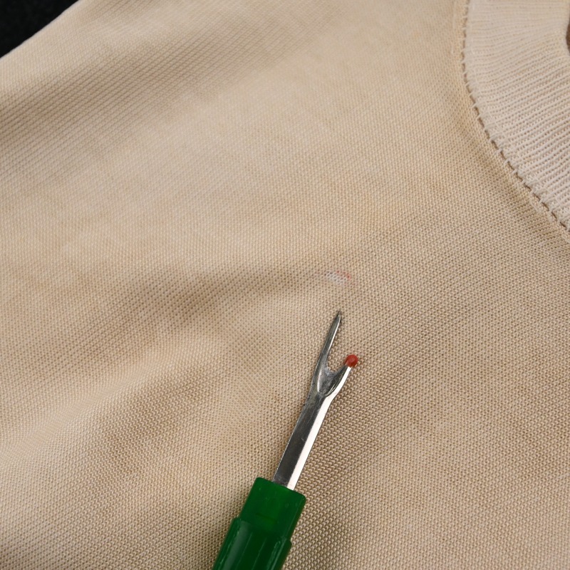 襟元のステッチが抜けてます。