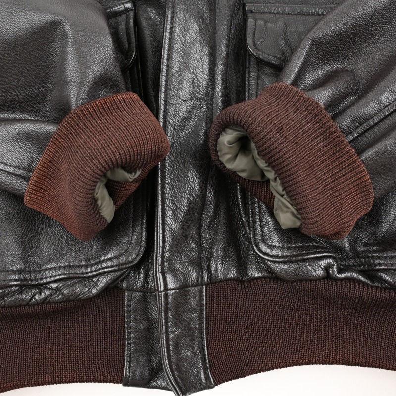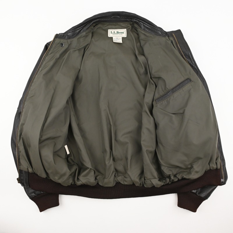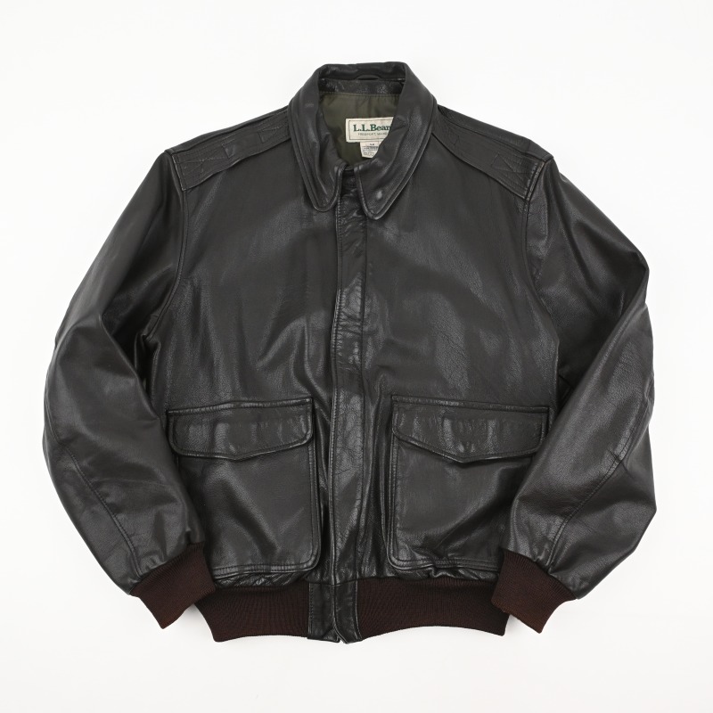 ダークブラウンのボディに赤茶リブの配色、 ハンドウォームポケットなどの仕様が人気のL.L. BEANのA2 styled leather jacketです。