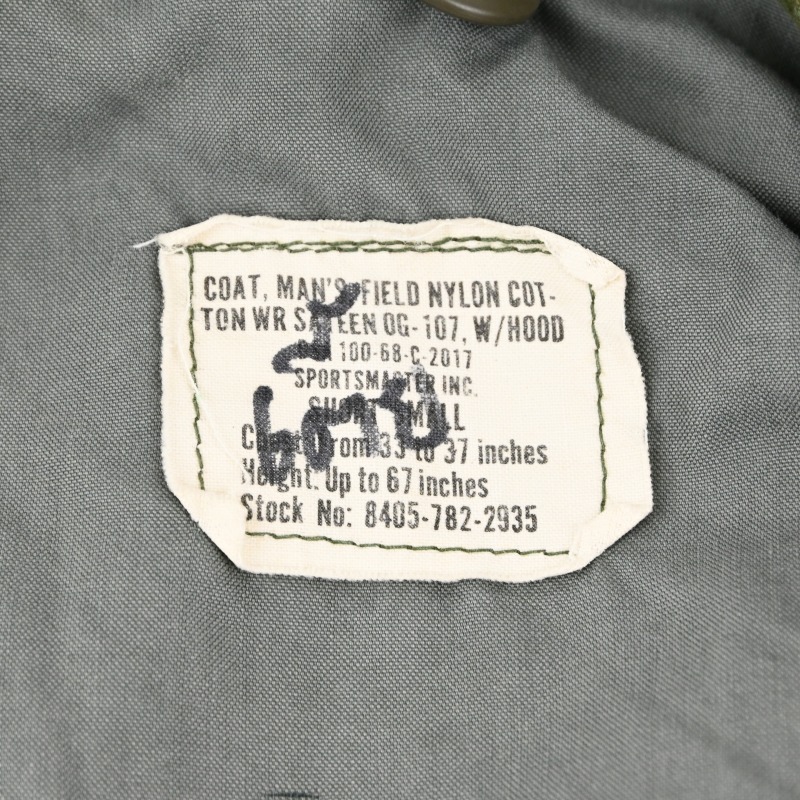 空軍に向けて支給されたとも言われるセージグリーンの裏地、通称グレーライナーが付くM-65 FIELD JACKETです。