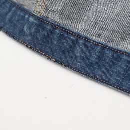 Levi’sと比べ細めのアームや絞りの効いたウェストラインなど、ウェスタンウェア由来の洗練されたスタイルのジャケットです。