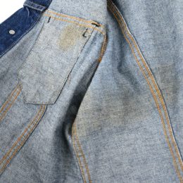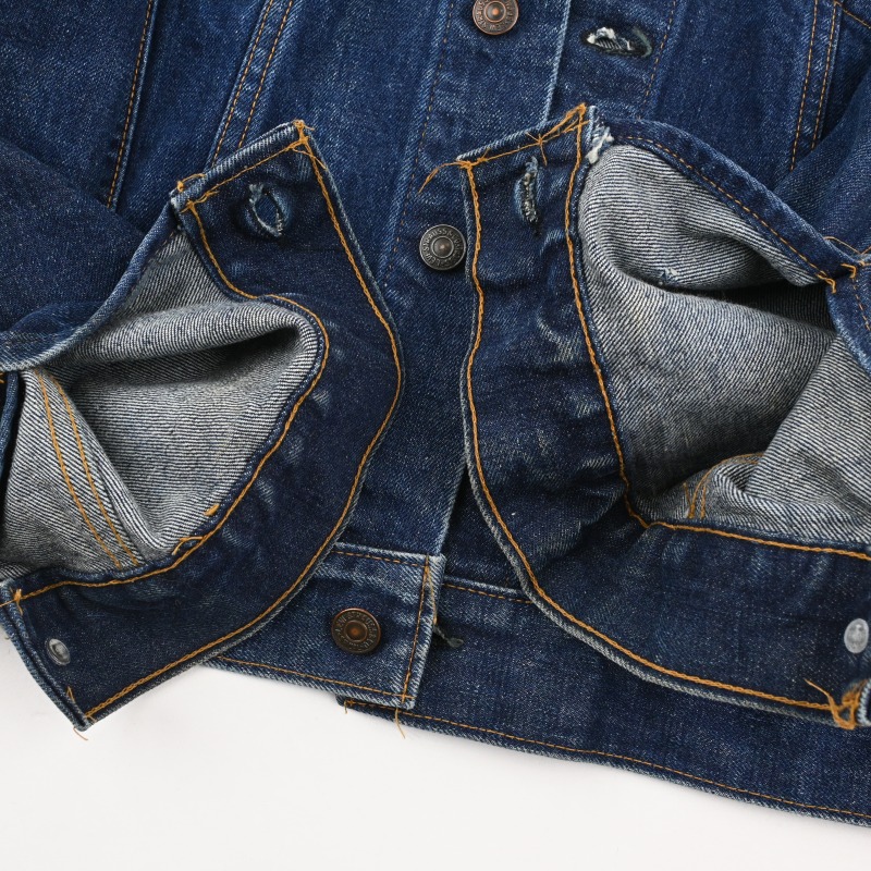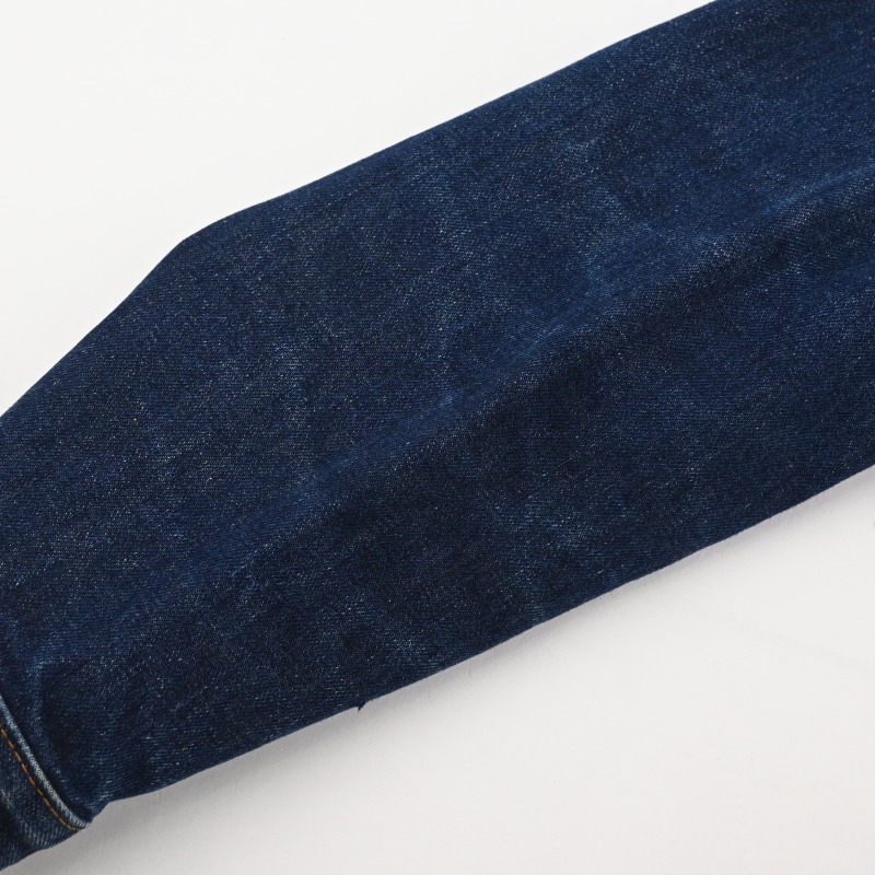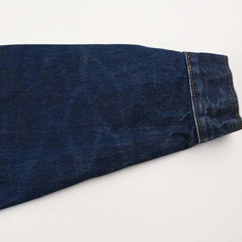腕周りに薄くアタリが出ておりますが、数回wash程度の非常に濃い色残りで、