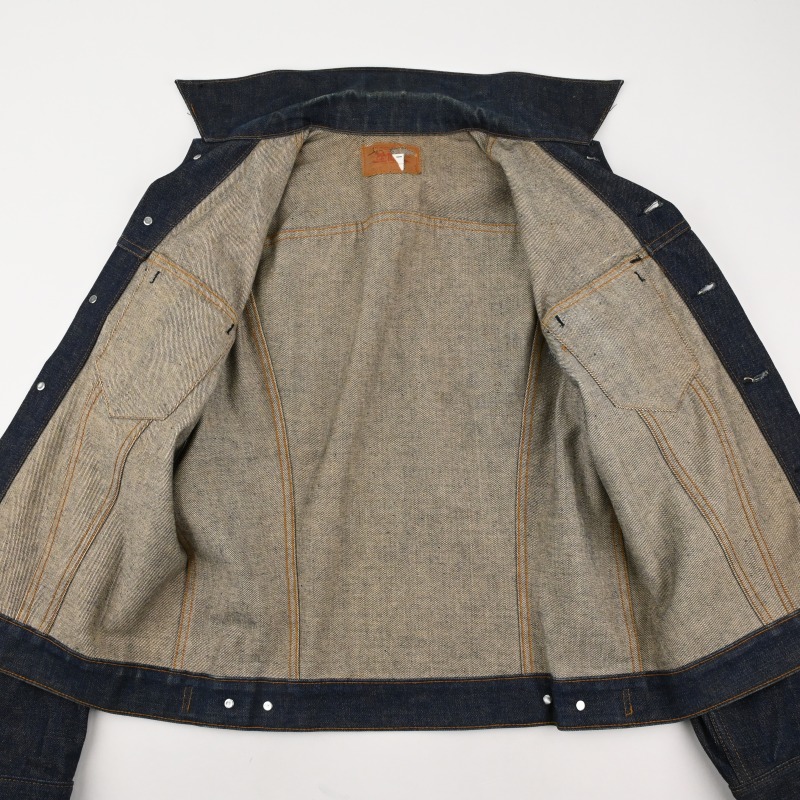 ノンウォッシュのまま着用されており、袖裏に汚れ、 脇下などに若干の擦れがみられますが、 その他擦れや糸切れもなく非常に良好なコンディションです。