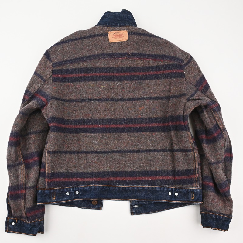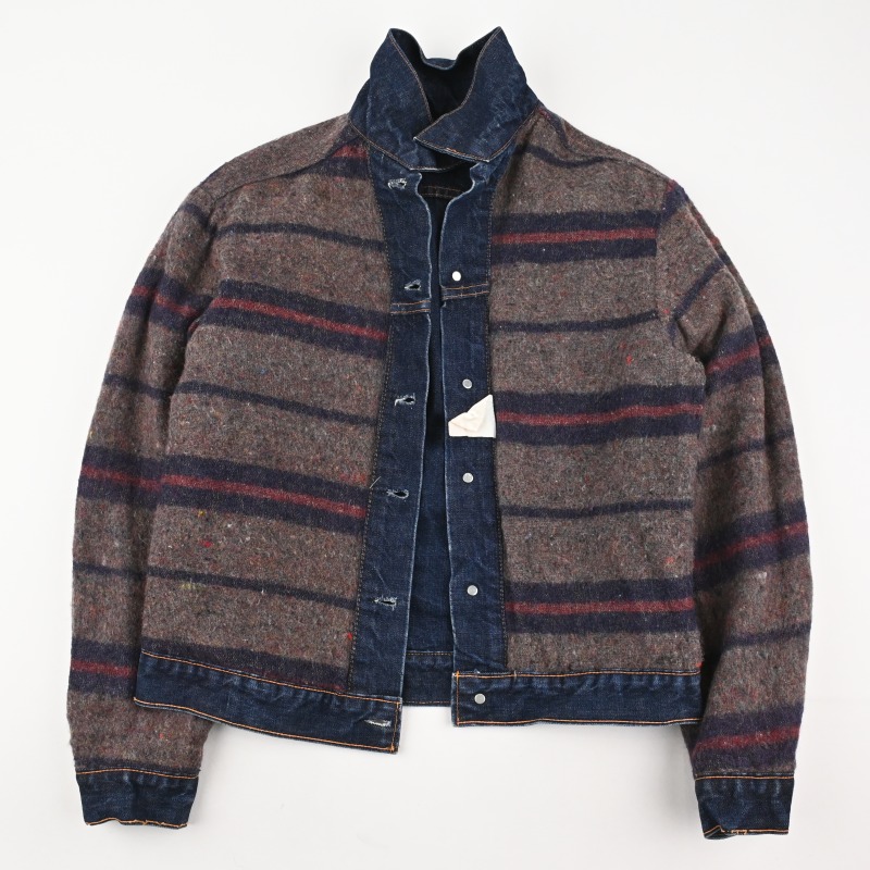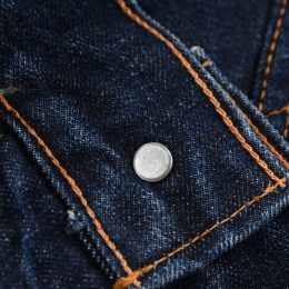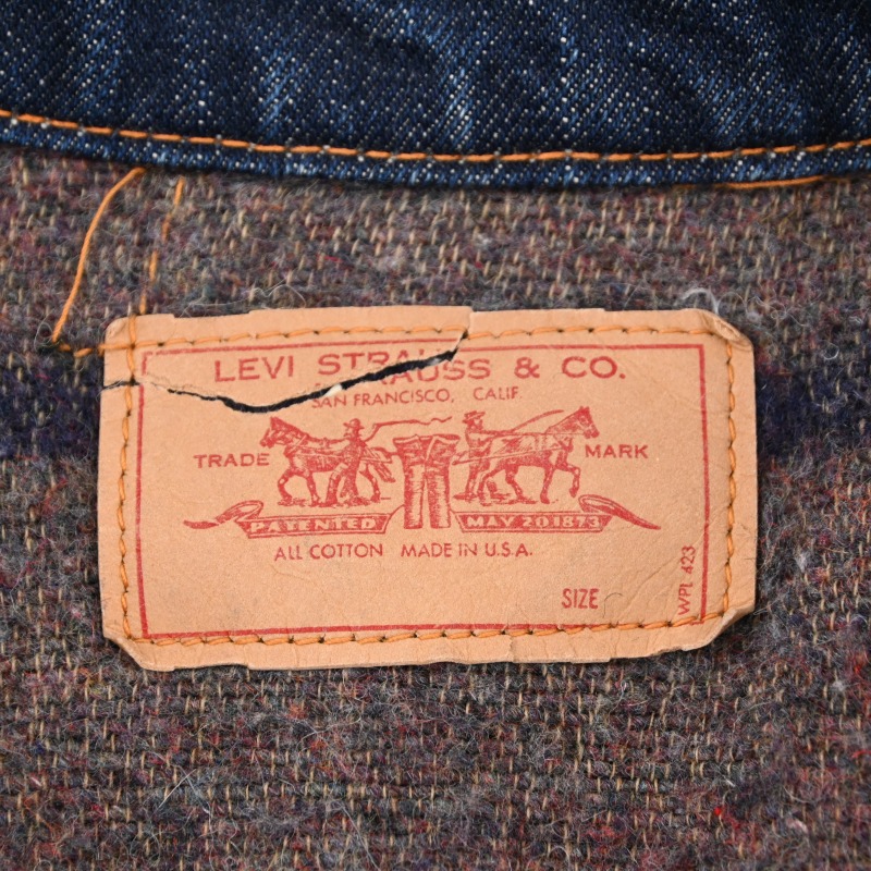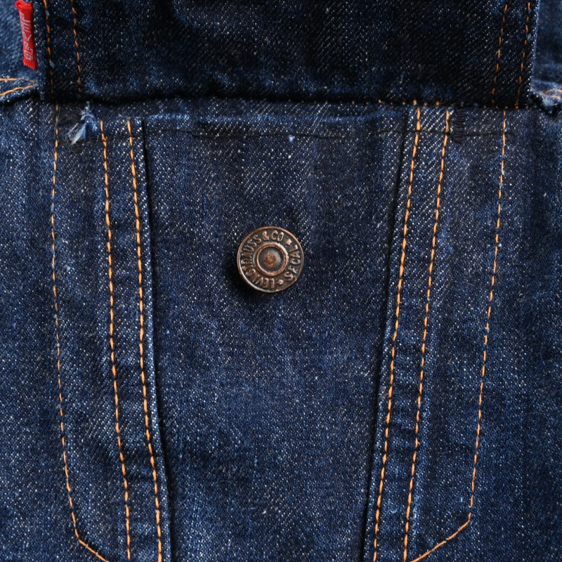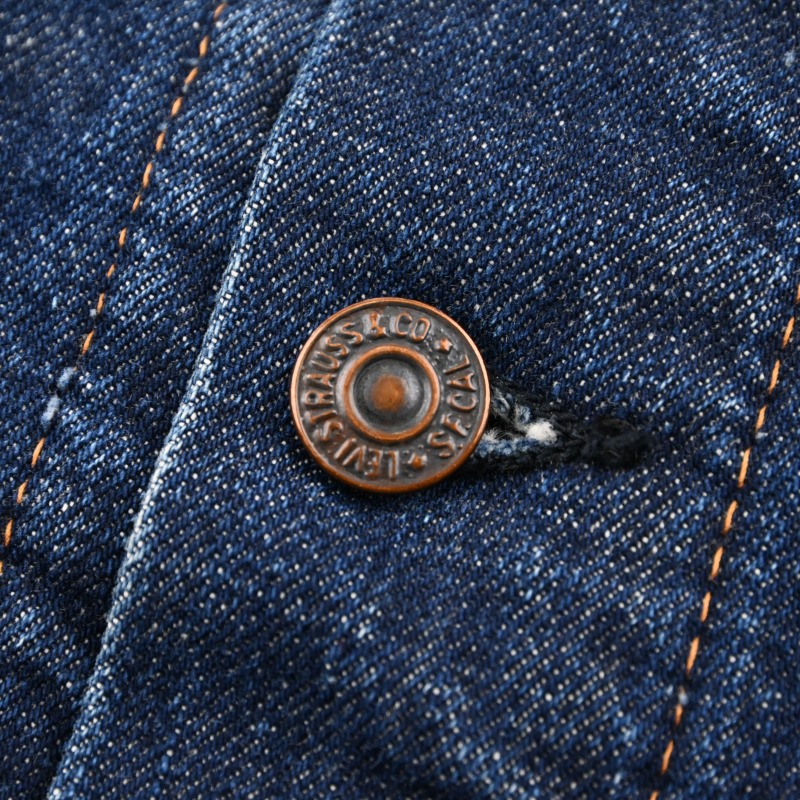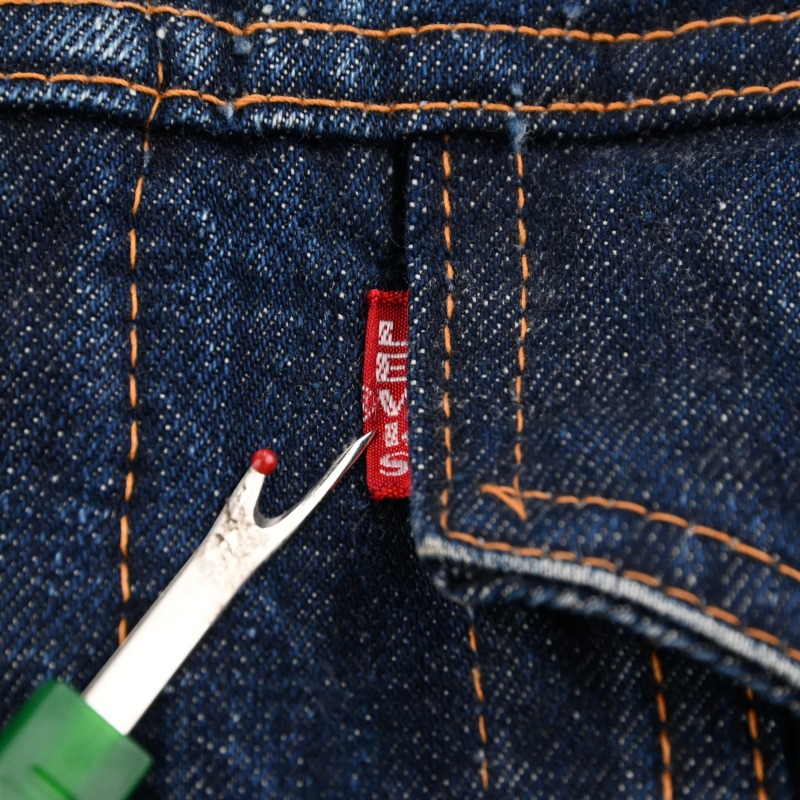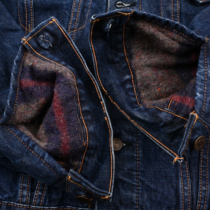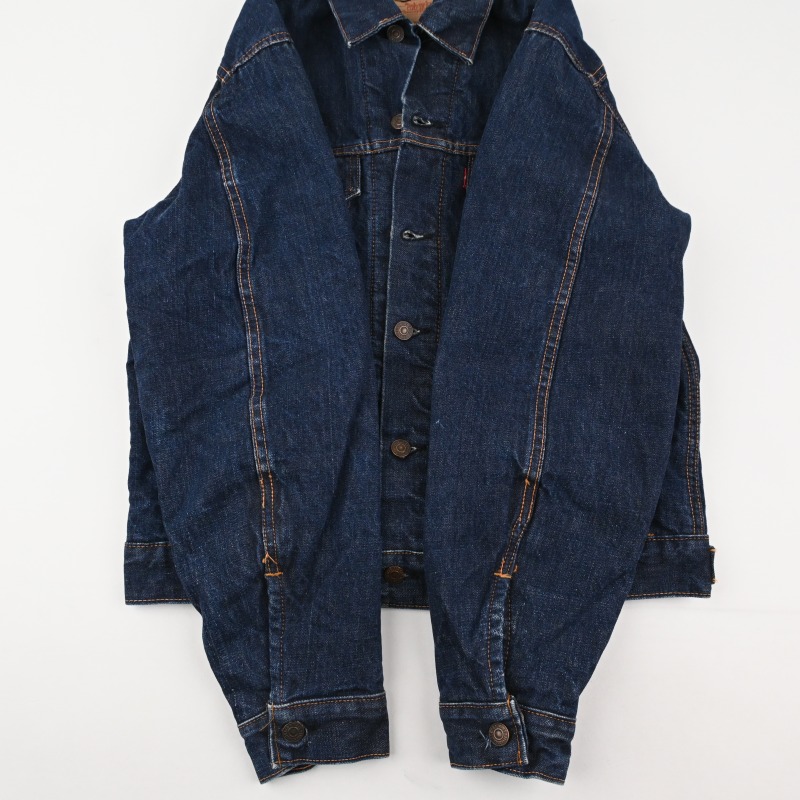 脇下部分の裏地に傷と、袖先のステッチ切れが見られますが、 その他に汚れや目立つダメージなどは見られません。 恐らく1wash程と思われる未だ硬さの残る生地感で、 非常に良好なコンディションです。