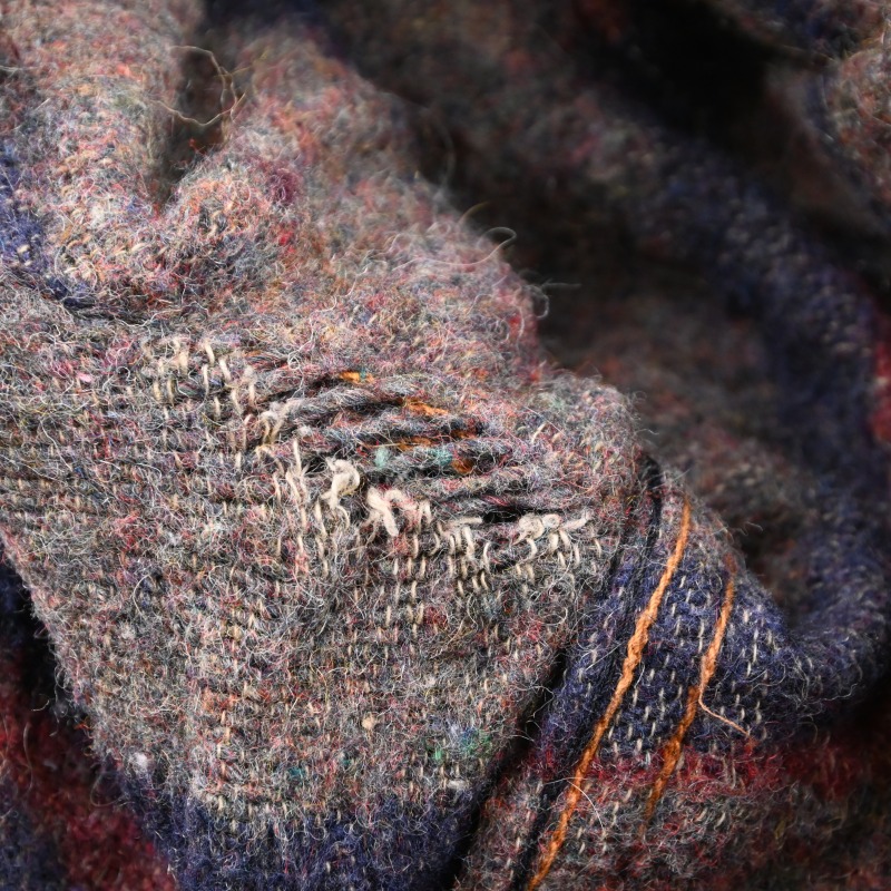 脇下部分の裏地に傷と、袖先のステッチ切れが見られますが、