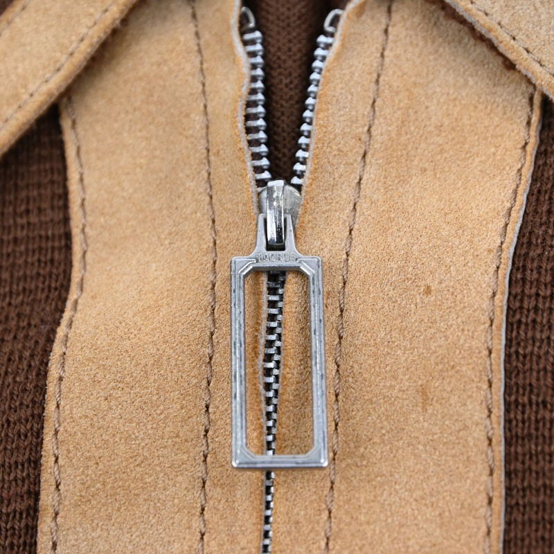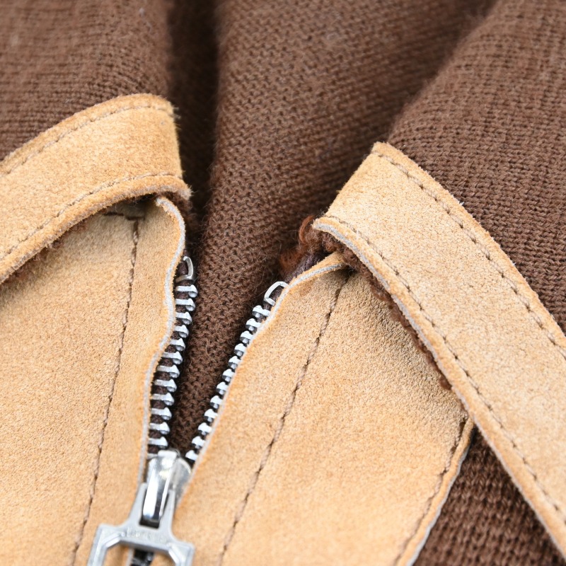 アクリルニット/フェイクスエードの切り返しデザインが特徴的なプルオーバーです。