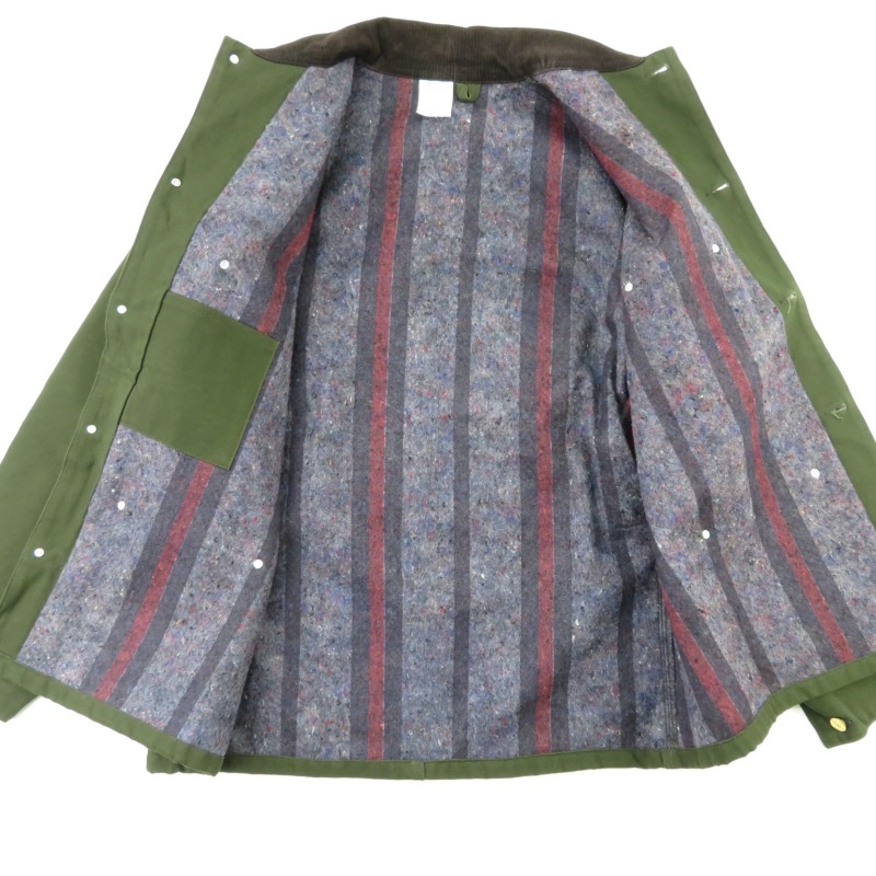 富山店の商品になります。 電話でのお問い合わせ:076-492-8634 人気のChore Jacket レアカラーで濃い目の モスグリーンと言った感じです。 Made in USA,Green SIZE:46 あくまで参考程度ですが180cm位の方に良い と思いますがオーバーサイズだと175cm位の 方でも行けるかもしれません。 CONDITION:試着程度の未使用未洗いかと 思われる非常に良い状態です。 神経質な方は必ず店頭でご確認ください。 当店のシステムは買い物カゴを使用していない 為ほんの少しの差で注文が入っての売り違いや 店頭でも販売している為ご注文頂いた時点で 商品が欠品している可能性があります。 お手数を掛けますが在庫確認後の発送になりま すので予めご了承頂ける方のみお求め頂けまし たら幸いです。当店の通販規約をこちらで必ず ご確認頂いてから当店をご利用ください。 お支払い方法クロネコヤマト代引(クレジット可) のみになります。 返品は受け付けておりません。 ご了承頂ける方のみお願い致します。