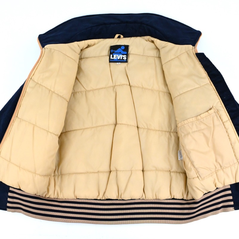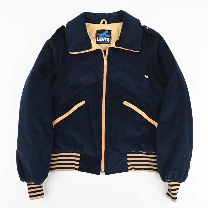 70年代頃のLevi’sのCORDUROY PUFF JACKETです。 リブのストライプがアイキャッチ―で、 中綿は100%POLYESTERで手入れも楽な仕様です。