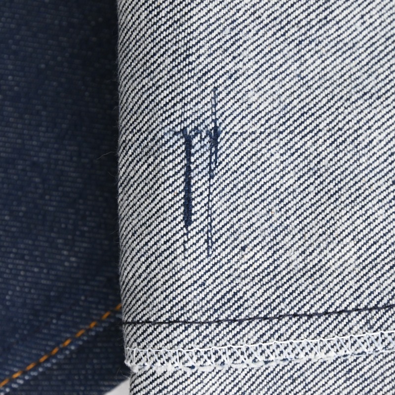 左膝付近に織り傷が見られますが、経糸が横方向に噛んだような形になっており、