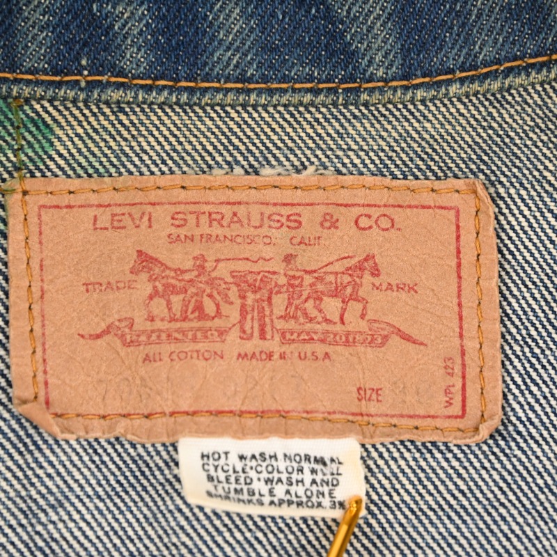 BIG”E”で布ケアタグの付く70年代初頭の製造と思われるLevi’s 70505 トラッカージャケットです。