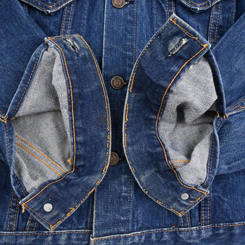 7割ほどの色残りで、一部身頃に傷、袖のステッチに擦り切れなど見られますが、 その他目立つ汚れダメージやリペアは無く比較的良好なコンディションです。