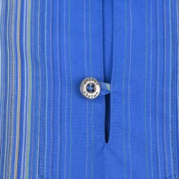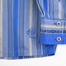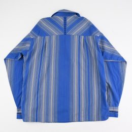 スキッパー型に鮮やかな色彩のマルチストライプの組み合わせで70年代を思わせるデザインと、リラックスしたシルエットが絶妙なバランス感です。