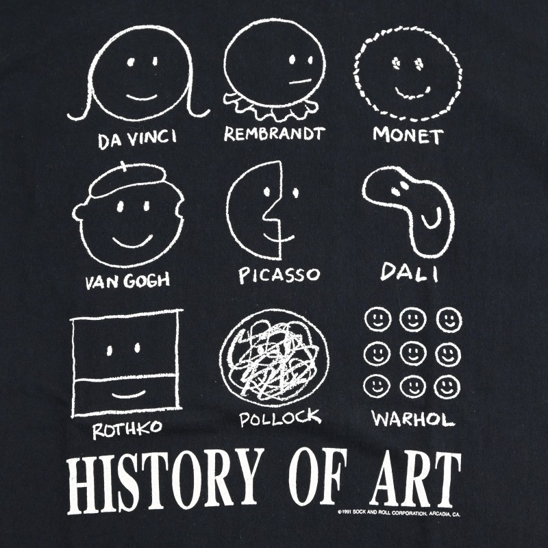 中世から現代まで様々な画家の作風を揶揄したスマイリーのプリントがポップな1枚です。