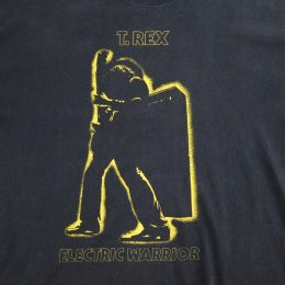 グラム・ロックの雄、T.REXの1971年発表のスタジオアルバム、”ELECTRIC WARRIOR”のカバーアートワークがプリントされたTシャツです。