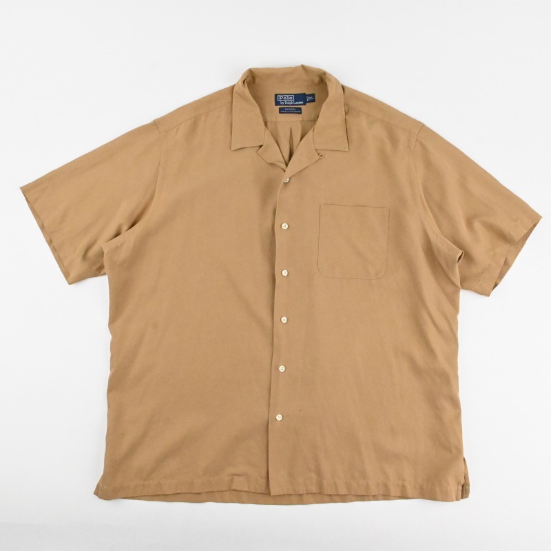 90’s POLO RALPH LAUREN “CALDWELL” OPEN COLLAR SHIRT SIZE XL BAIGE