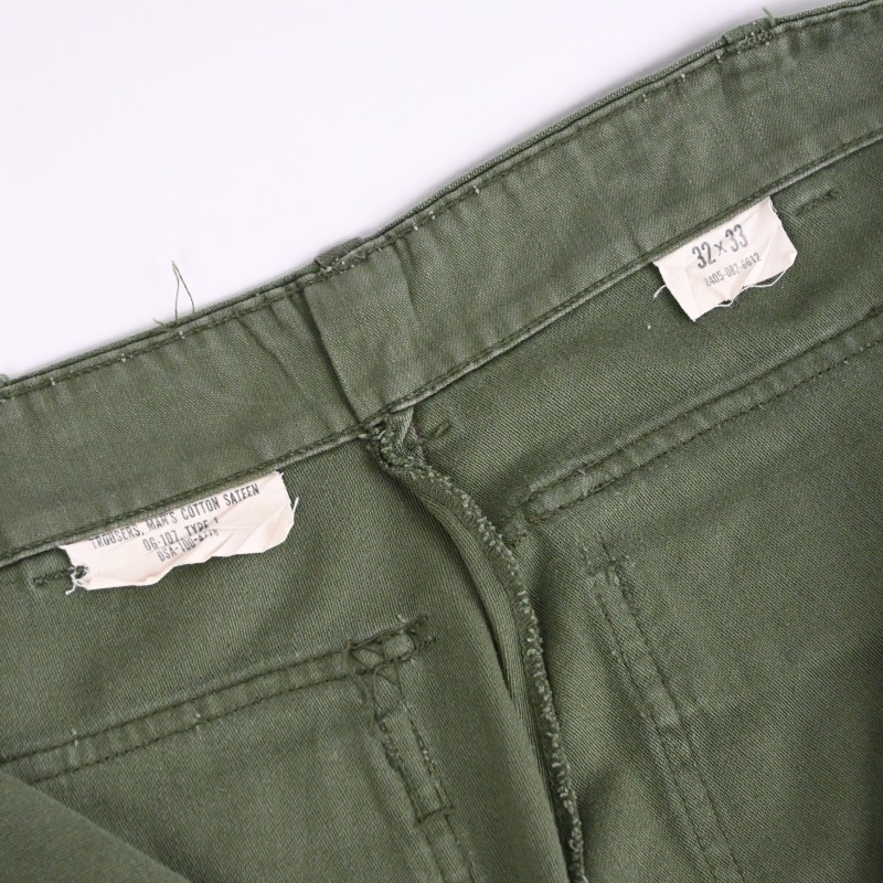 60’s SATEEN FATIGUE PANTS BUTTON FLY SIZE W32 L32 |