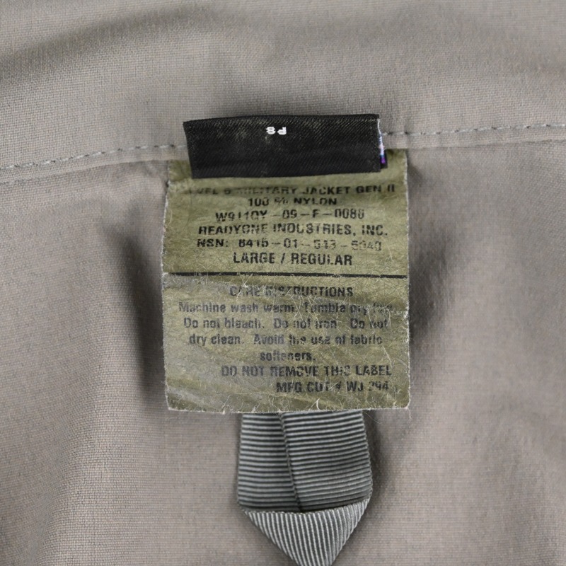 米特殊作戦群へ向けて開発された衣料体系、”PCU”にて正式採用されていたPATAGONIAのLEVEL5 ソフトシェルジャケットです。