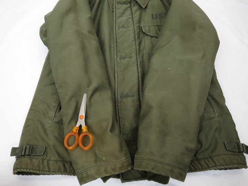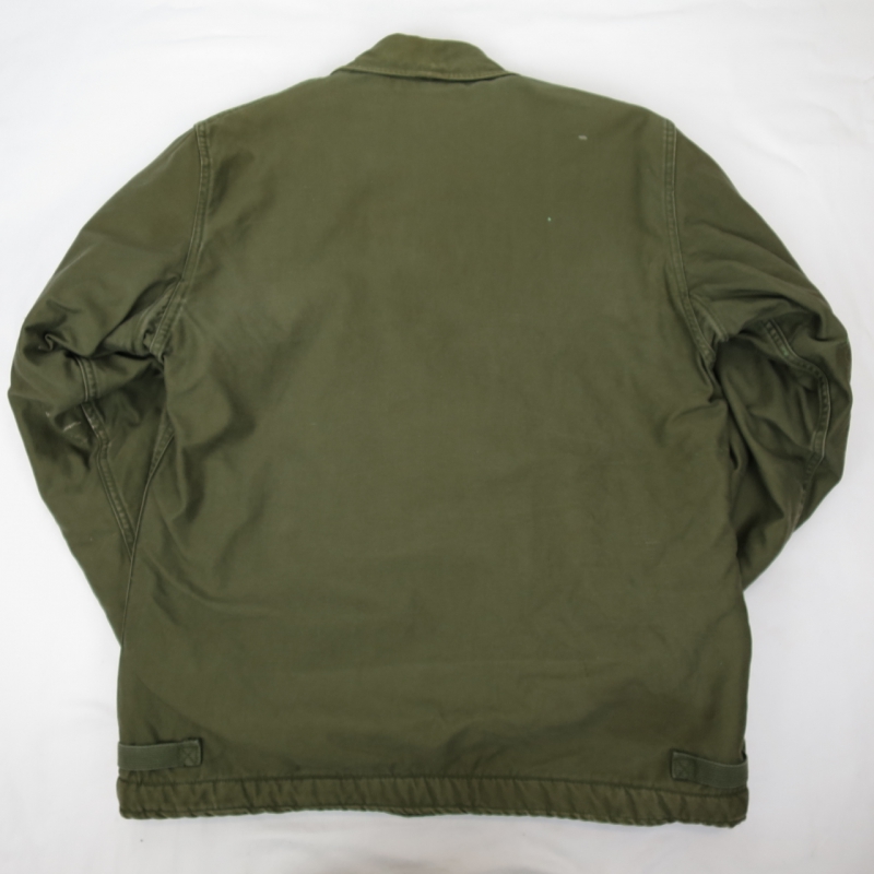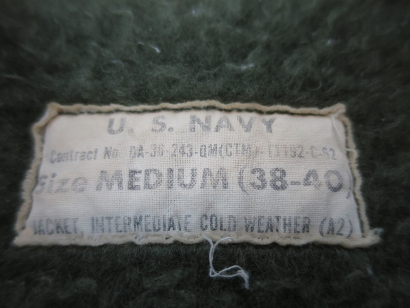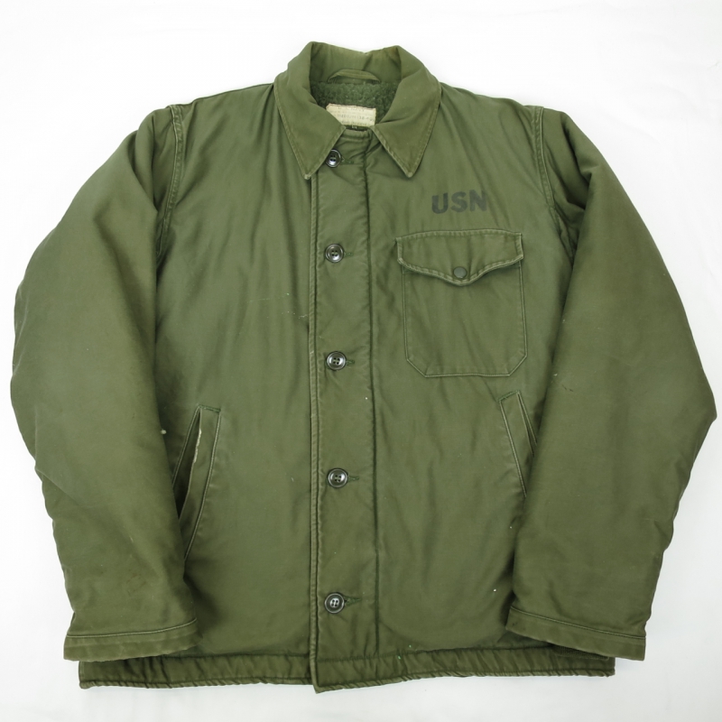 金沢店の商品になりますので、電話でのお問合わせは076-210-7010へお願いしますこれも中々紹介出来ない最初期A-2になります。胸に入るU.S.Nステンシルは2、3年のみだった様な気がしますので、非常に見つかりにくいですし、弊社も比較的綺麗な物になると殆ど紹介出来ていないのではないでしょうか?袖口、右袖に少しダメージがありますが、それほど酷い物ではなく、十分納得して頂けるコンディションだと思います。お好きな方は、是非この機会にお考えください。神経質な方は、ご遠慮ください。こちらの商品は全て店頭でも販売している為ご注文頂いた時点で商品が欠品している可能性があります。お手数を掛けますが電話かメールで連絡の上在庫確認後の発送になります。お支払い方法は クロネコヤマト代引き(クレジット可)のみになります。 返品は受け付けておりません。ご了承の上お買い上げ下さい。