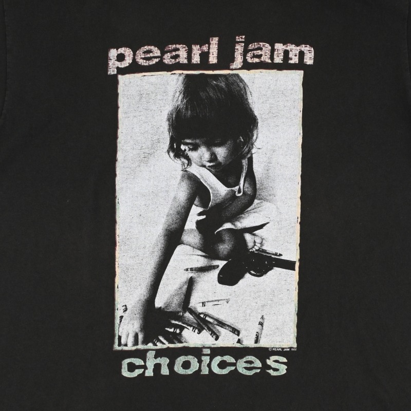 1991年発売の1stアルバム”TEN”からのシングルカットタイトル”JEREMY”のジャケットアートワークである少女の写真の別テイクがプリントされたTシャツです。