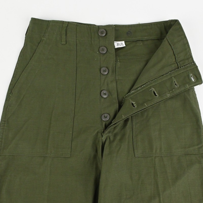 60’s SATEEN FATIGUE PANTS BUTTON FLY DEAD STOCK SIZE W30 L33