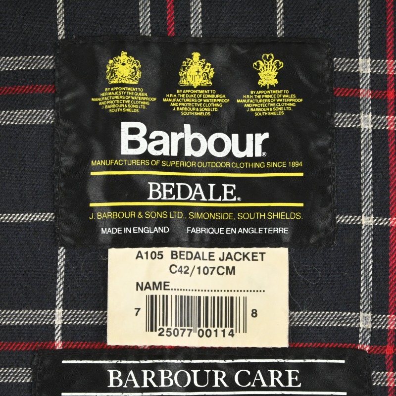 92年製BARBOUR BEDALEです。