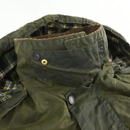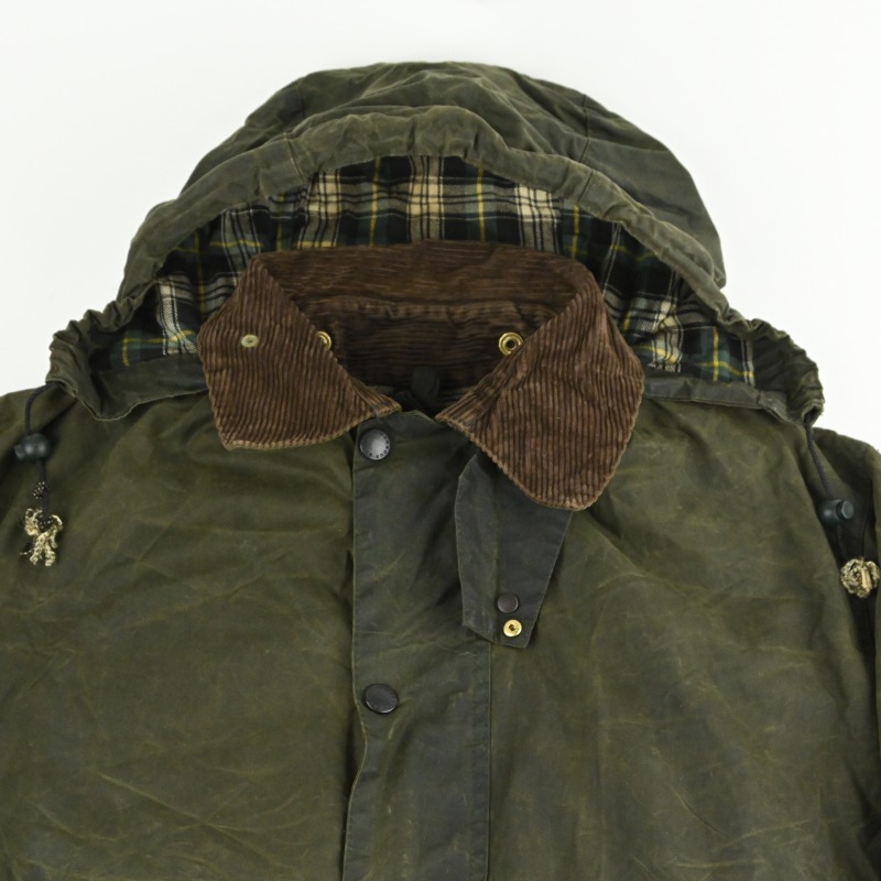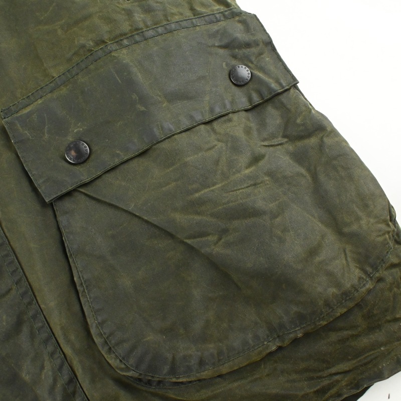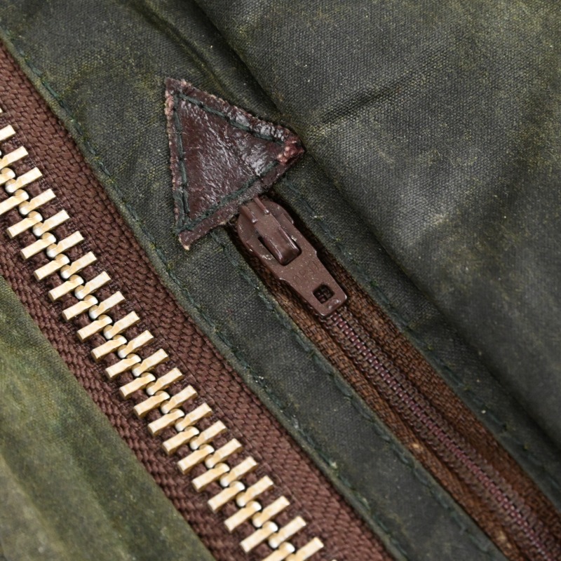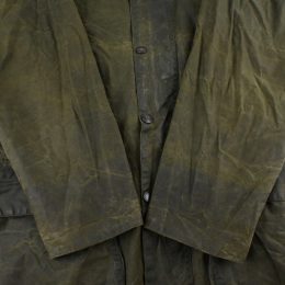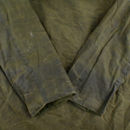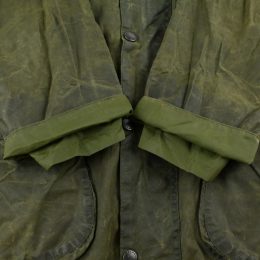 全体的に汚れの付着と、 オイルドジャケット特有の匂いが少々ある個体です。 匂いに関しては古いワックスジャケットをお持ちの方はあまり気にならない程度で、 擦り切れなどのダメージは無く、全体的には良好なコンディションです。