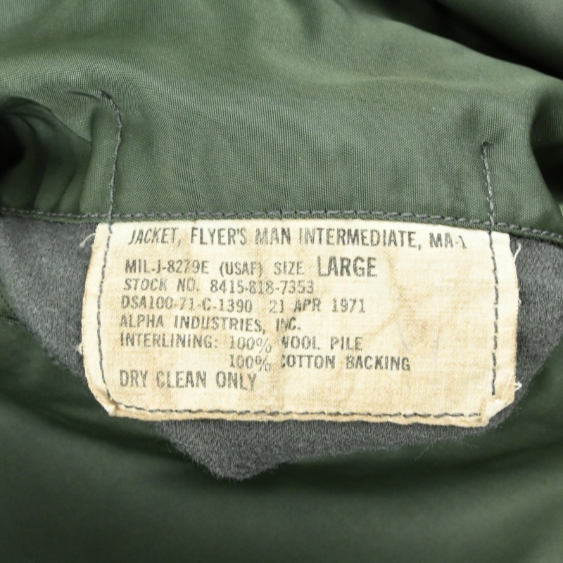 71’y U.S.A.F. MA-1 SIZE L MIL-J-8279E |